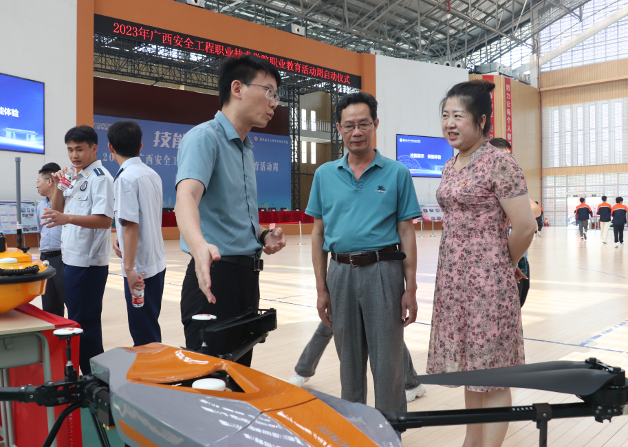 广西壮文学校/广西民族中等专业学校、武鸣区城厢镇第一小学、广西宁福新能源科技有限公司、南宁市华测导航技术有限公司、南宁市骏徕测绘技术有限公司、奇安信科技集团广西分区、广西塔易信息技术有限公司等企事业单位代表出席活动。民族中等专业学校、武鸣区城厢镇第一小学的师生代表,学院各处室、系部负责人及教生代表近1200人参加了启动仪式。