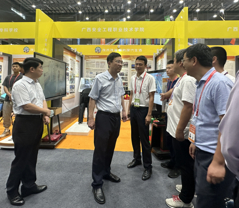 自治区教育厅党组书记、厅长刘友谊(左二)到我院展位视察指导工作